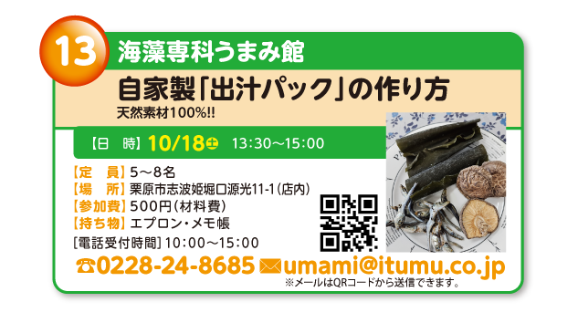 お店の御主人が先生となったその店ならではのプログラム。